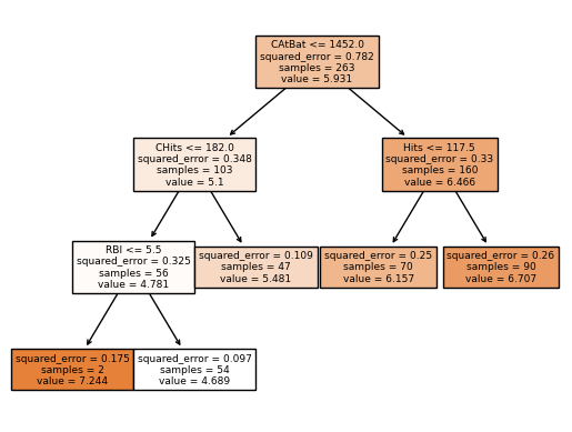 print(export_text(grid.best_estimator_, feature_names=X.columns.to_list(), show_weights=True, max_depth=20))|--- CAtBat <= 1452.00