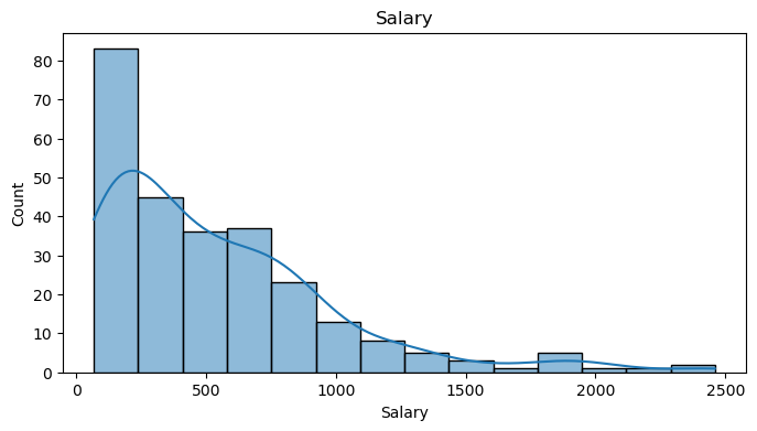 We have 59 missing values in the Salary. We are going to drop these observations.